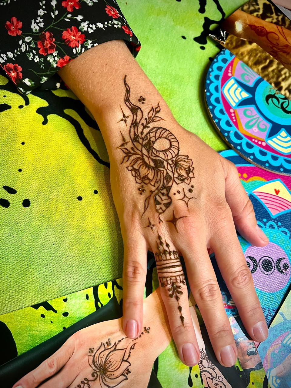 Используемые материалы - хна собственного изготовления, джагуа-гель. Стойкость рисунка 2-3 недели.