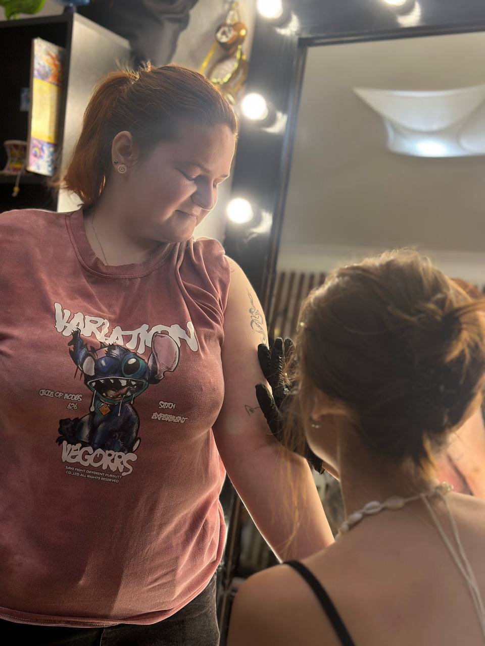 Работает в основном в графическом стиле, любит мрачные и детализированные татуировки, но всегда готова к экспериментам и необычным идеям!
